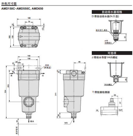 SMC气动元件被业界誉为世界一流产品,以其高性能、高品质、高性价比和技术领先性赢得了顾客高度满意。AMD微雾分离器能除去压缩空气中的空气溶胶状油粒子、除去0.01μm以上的炭粒或粉尘。可作为精密计测器用的高清净空气和洁净室用压缩空气的前置过滤器。过滤精度 :0.01μm (捕捉效率99.9%) 额定流量 (ANR):200~40000L/min